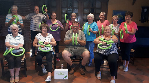Es hat allen viel Spaß gemacht. Vor allem Deine lockere Art, Deine verständlichen Anweisungen um uns in Schwung und ins Schwitzen zu bringen, gefiel allen Teilnehmer/innen sehr gut. Sogar unsere "Stuhlgymnastiker" waren mit Freude dabei. Wir werden versuchen, noch einmal einen Kurs zusammen zu bekommen, um nochmal das Erlebnis des Parallelschwungs, Brustöffner, Holzhacker und die wohltuende Massage zu erleben. Wir werden unsere "Smovey-Vibroswing" mit auf unsere Kurreise nehmen! Alles Gute und mach weiter so. ..."